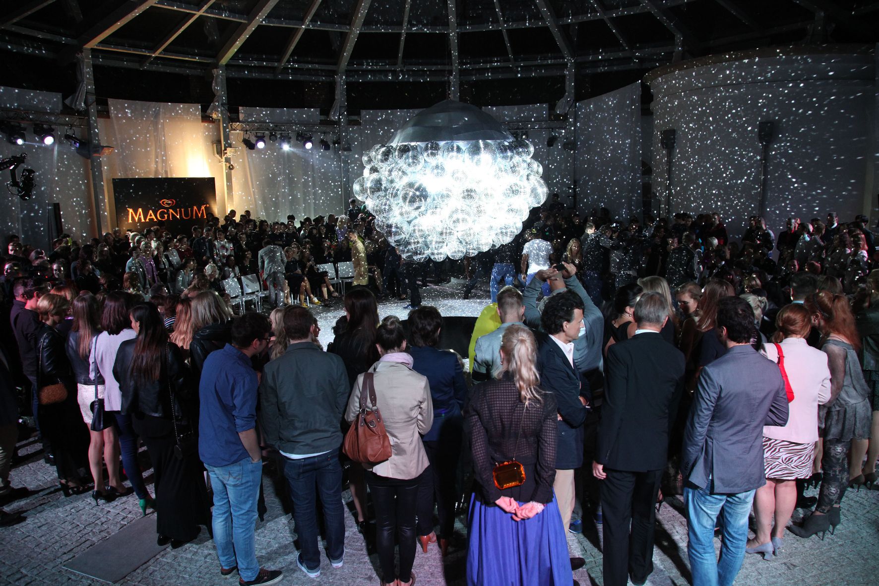 z kilkudziesiecioma kulami dyskotekowymi posrodku. Modelki prezentowaly piekne, szykowne suknie wykonane z niekonwencjonalnych material?w. Oczywiscie nie zabraklo specjalnosci projektantki, czyli koronek. Na imprezie bawili sie przyjaciele i wielbiciele kreacji Gosi Baczynskiej, m.in Malgorzata Kozuchowska, Magdalena Cielecka, Maciej Zien, Monika Brodka czy Monika Olejnik.